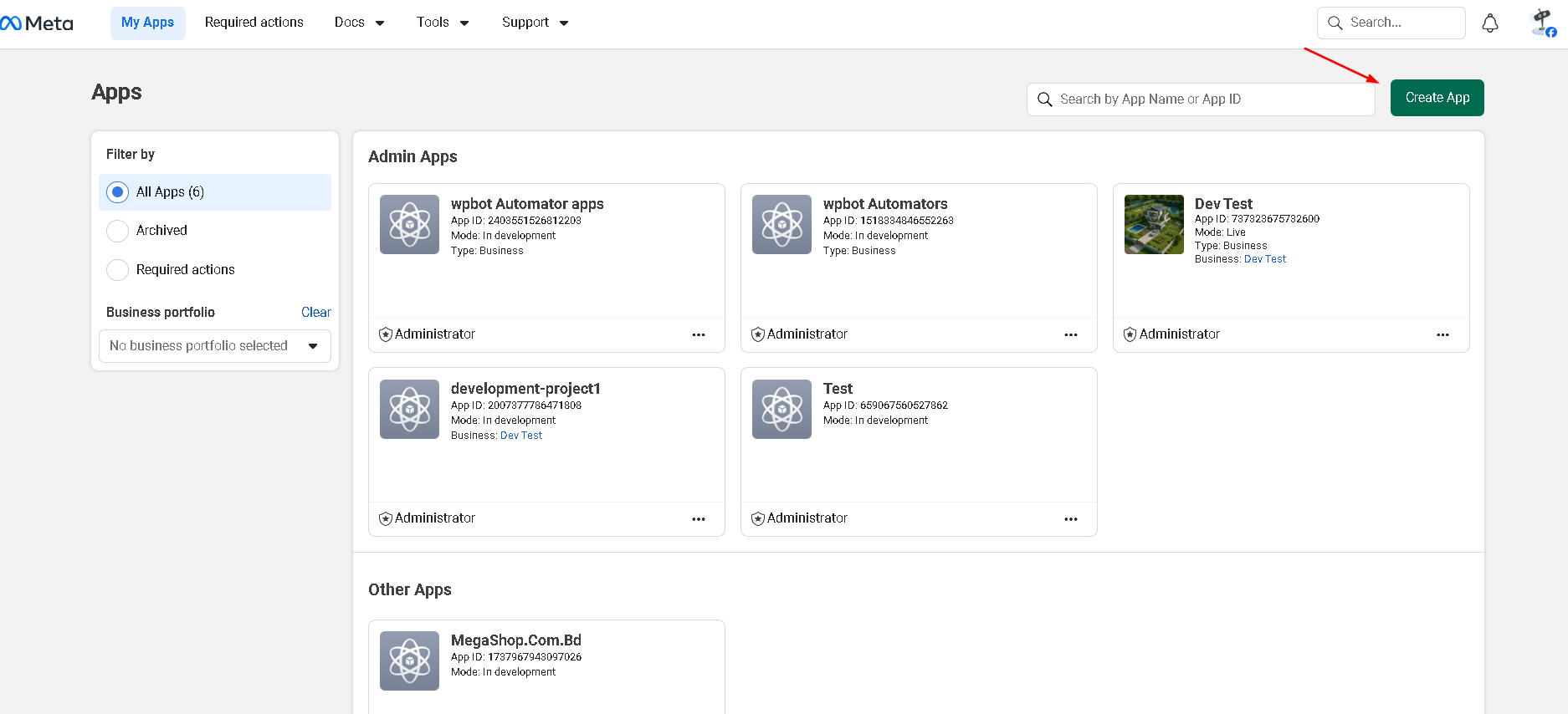 click Create App button to create new Apps.