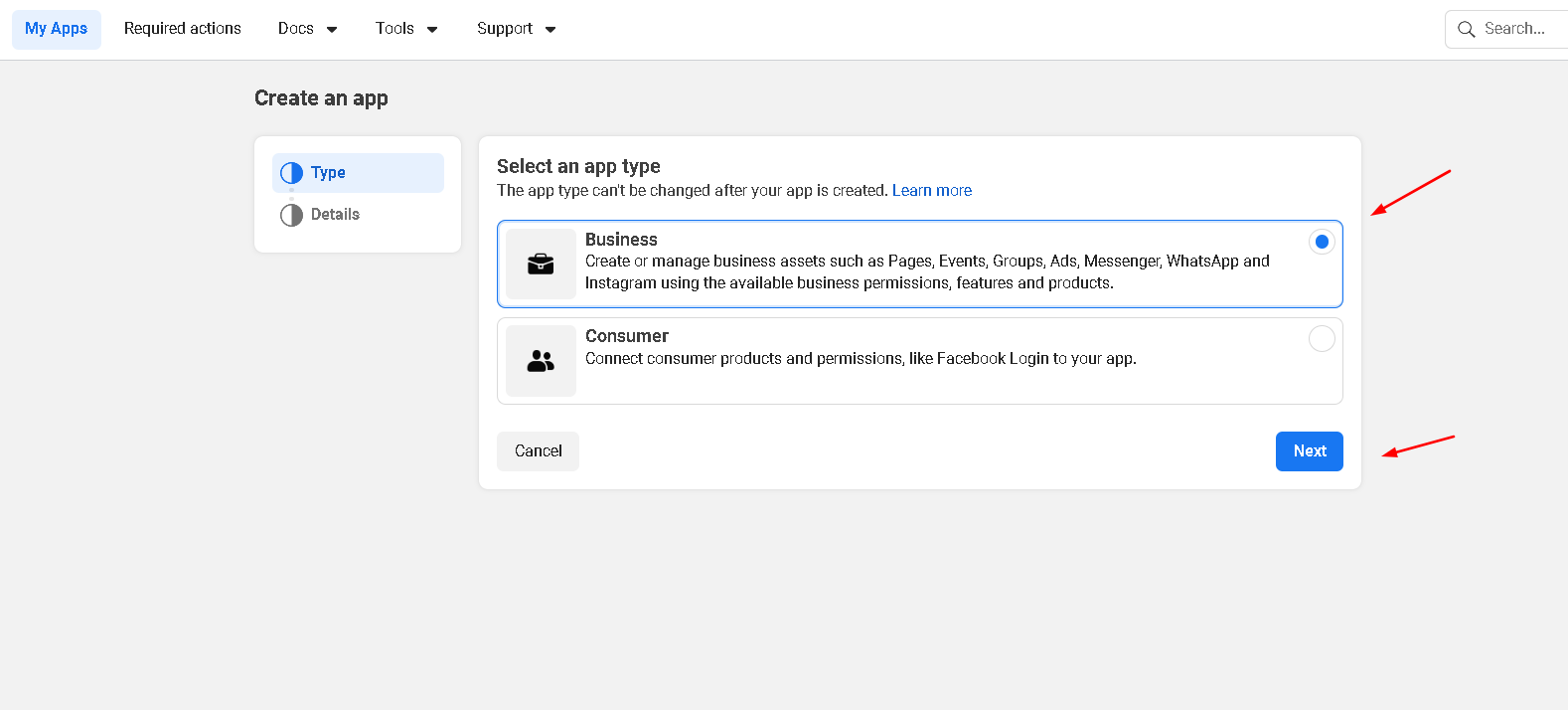 open facebook developers account and follow below steps: