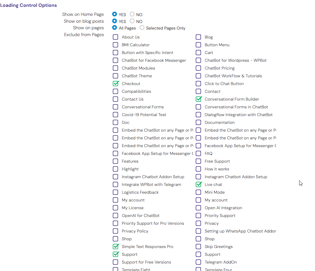 - You can enable the ChatBot only on a single page from Settings->Page Control area