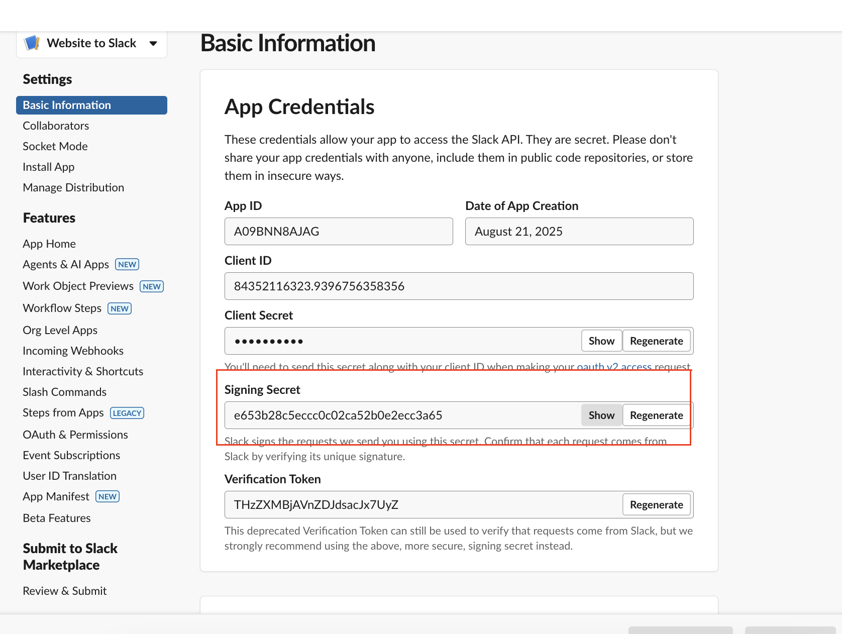 - From Basic Information → App Credentials.