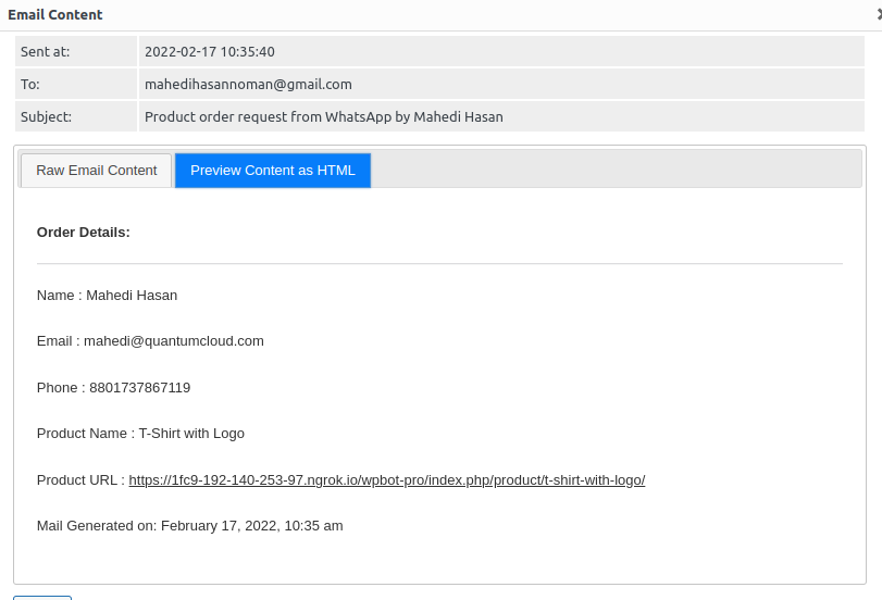 If the shopper denies the offer, Bot will ask for the shopper’s email that will be sent to the shop admin with details about the product and the last offer by the shopper.